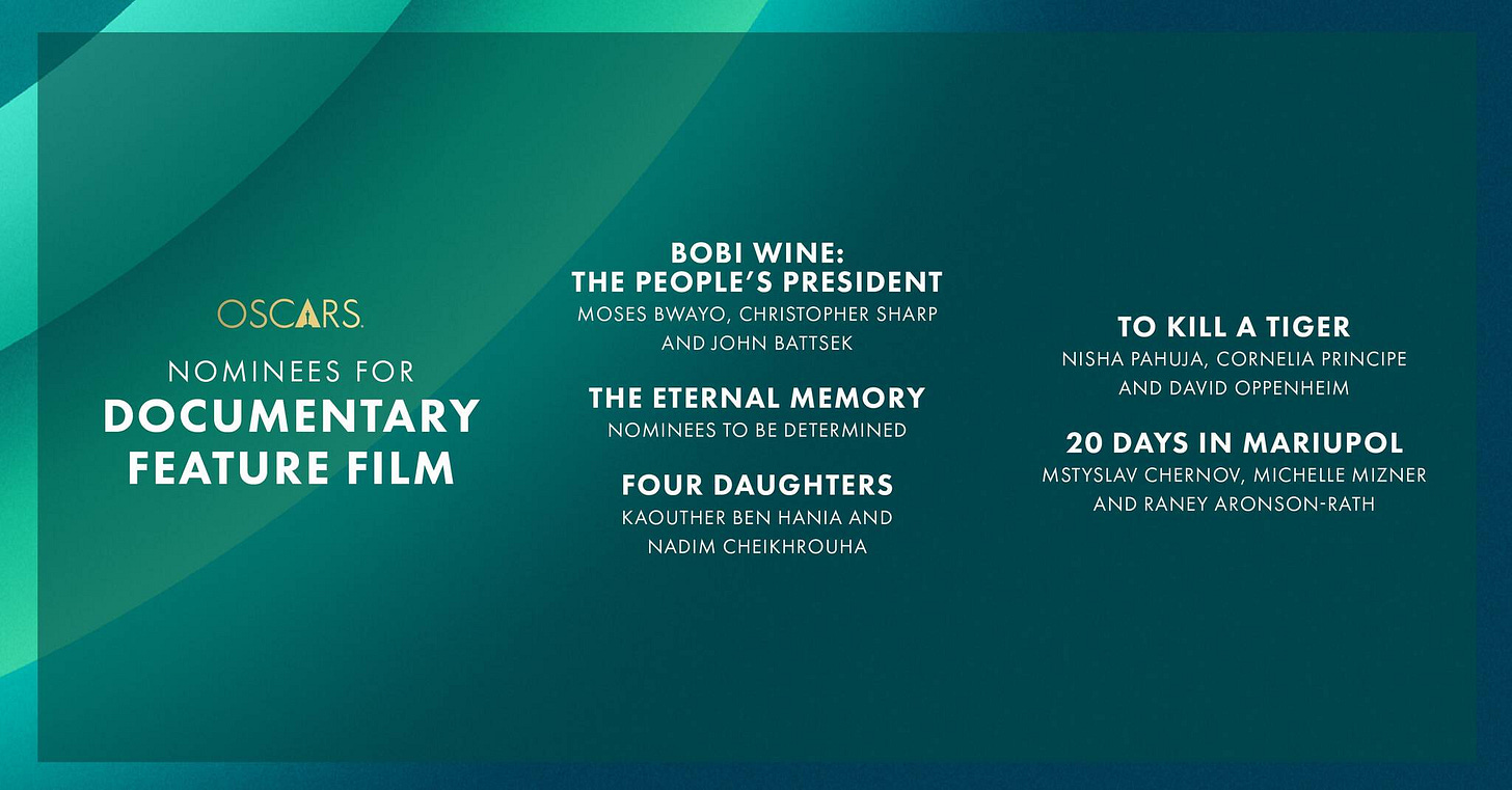This year’s nominees bring us stories about the betrayal of the Osage Nation, confronting destiny after emigrating from South Korea, finding beauty in the world as a toilet cleaner in Tokyo, and the boots-on-the-ground perspective of the Russian invasion of Ukraine. These stories come from across the globe and are meant not just to entertain but also to evoke empathy and reflection. Without the accolade of an Oscar, many of these films would go unseen.