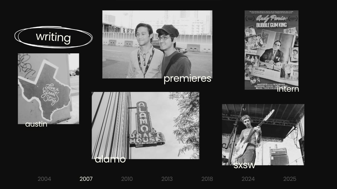 In 2007, I moved to Austin, TX. I lived within walking distance of the Alamo Drafthouse, where I’d watch advance screenings and indie programming that opened up new perspectives. Immersing myself in the energy of festivals like Austin City Limits, SXSW, and Fantastic Fest motivated me to explore screenwriting. I took a class, and soon after, I was interning on a documentary. That’s when I learned to write.